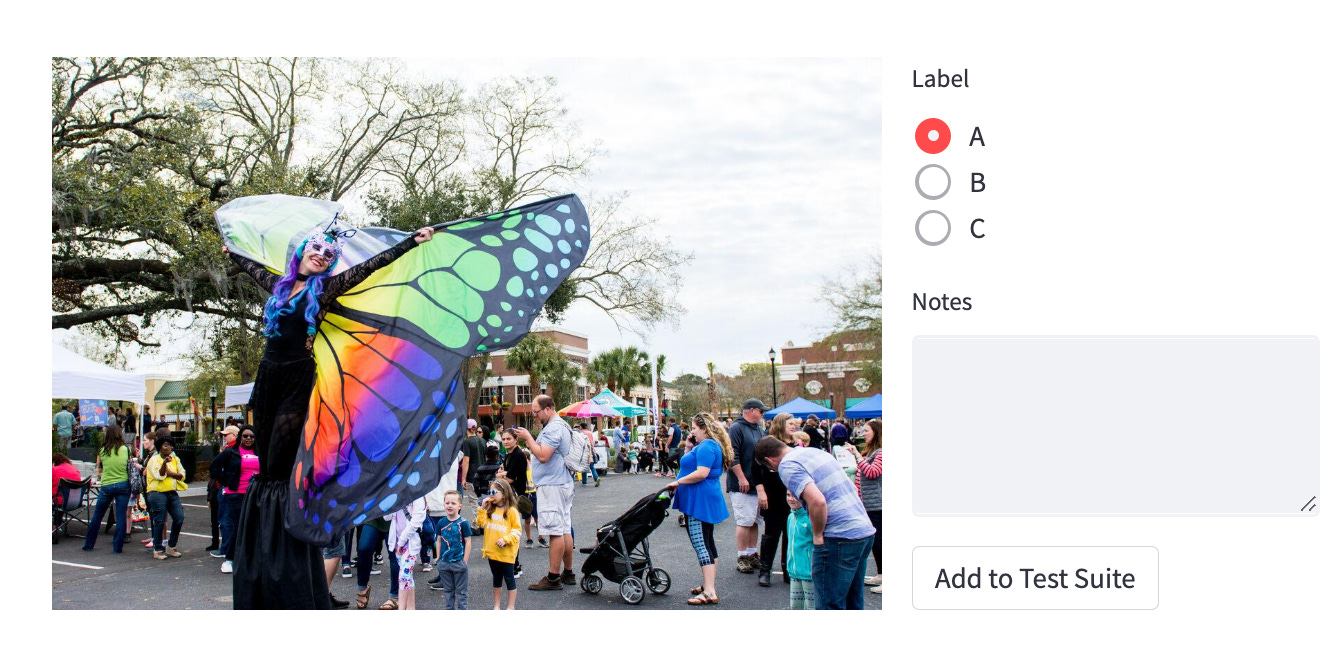 If a problem is found with a data point in annotation, imagine the ability to put a button that says “Add to test suite” directly in your annotation tool.